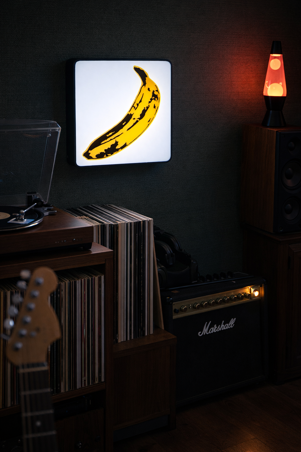 Zoekwoorden: Velvet Underground Lightbox, Andy Warhol Banana, Pop Art Lamp, Vinyl Decoratie, Muziek Cadeau, LED Kunst.